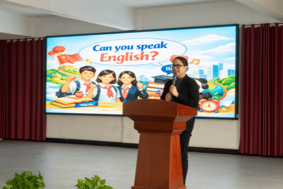 接着,外教Joey以“I CAN DO IT!”为主题,与学生们分享了日常英语学习的八个实用好方法:每天进步一点点、模仿优秀表达者、大胆提问、不怕犯错、循序渐进、多听多练、积极互动。他鼓励学生:“Every small effort brings you closer to confidence.”分享过程中,学生们踊跃提问,从发音技巧到单词记忆,Joey一一耐心解答,现场笑声与掌声不断,气氛热烈活跃。