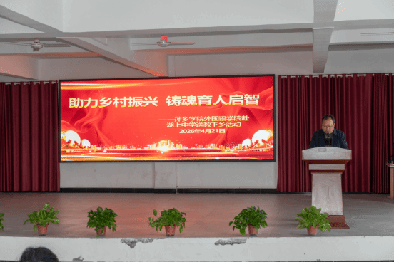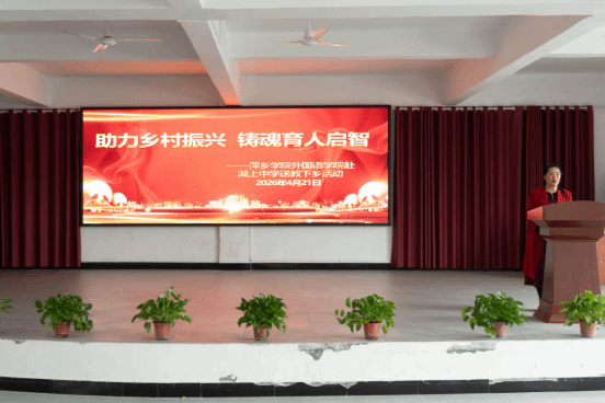 为落实立德树人根本任务,践行高校服务乡村基础教育的使命担当,推动城乡教育协同提质,4月21日,萍乡学院外国语学院院长欧阳咏梅带领教师团队、外教Joey、学生志愿者,携手萍乡市第七中学英语教师丁冬,走进莲花县湖上中学,开展以“助力乡村振兴,铸魂育人启智”为主题的“教育协同提质行动”。