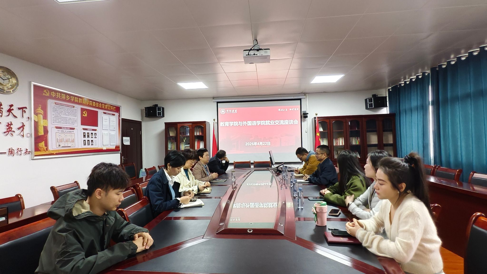 为进一步夯实就业工作基础,破解就业工作难点,拓宽就业工作思路,提升毕业生就业服务质量,4月22日上午,萍乡学院外国语学院党委书记刘佳萍一行前往教育学院,开展就业工作学习交流座谈。教育学院党委书记阳学文及全体学工线老师热情接待,双方围绕就业工作开展深入交流,凝聚共识、互学共进。