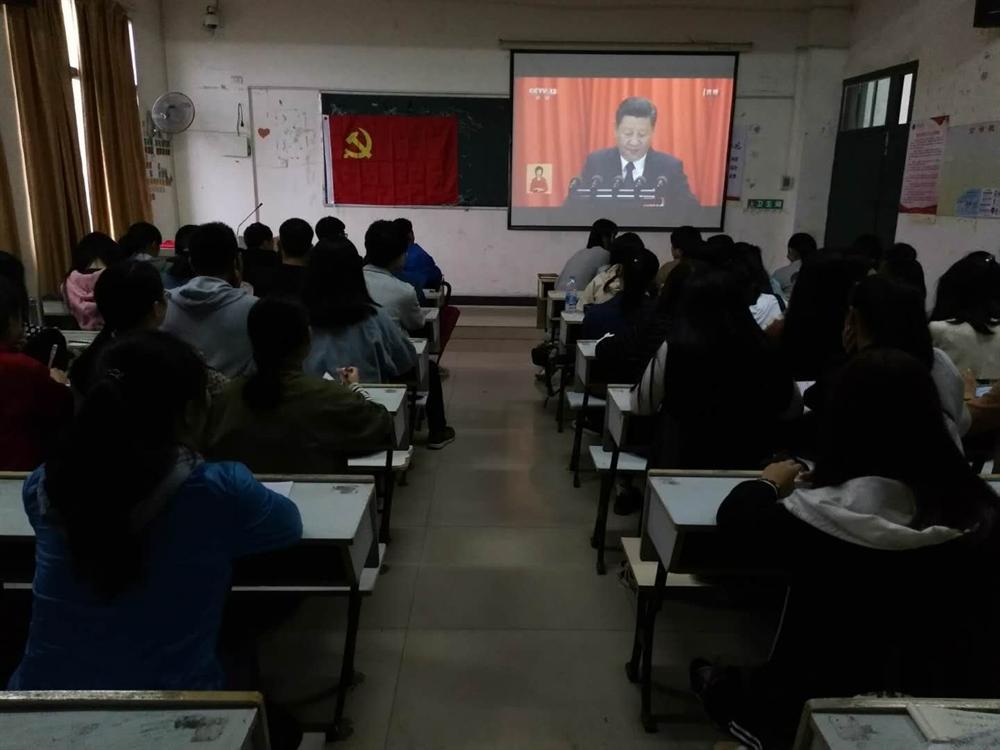 怀着激动的心情,我们迎来了中国共产党的第十九次全国人民代表大会。2017年10月18日上午九时,党的十九大开幕会在人民大会堂隆重举行。为了让大学生更好地了解中国未来五年的政策纲领,提高党性修养。外国语学院16商本一班全体同学于2017年10月18日在英华楼3335认真地观看了十九大开幕会及习近平总书记代表十八届中央委员会作报告。此次活动由廖宇沙老师组织,全班同学参与。