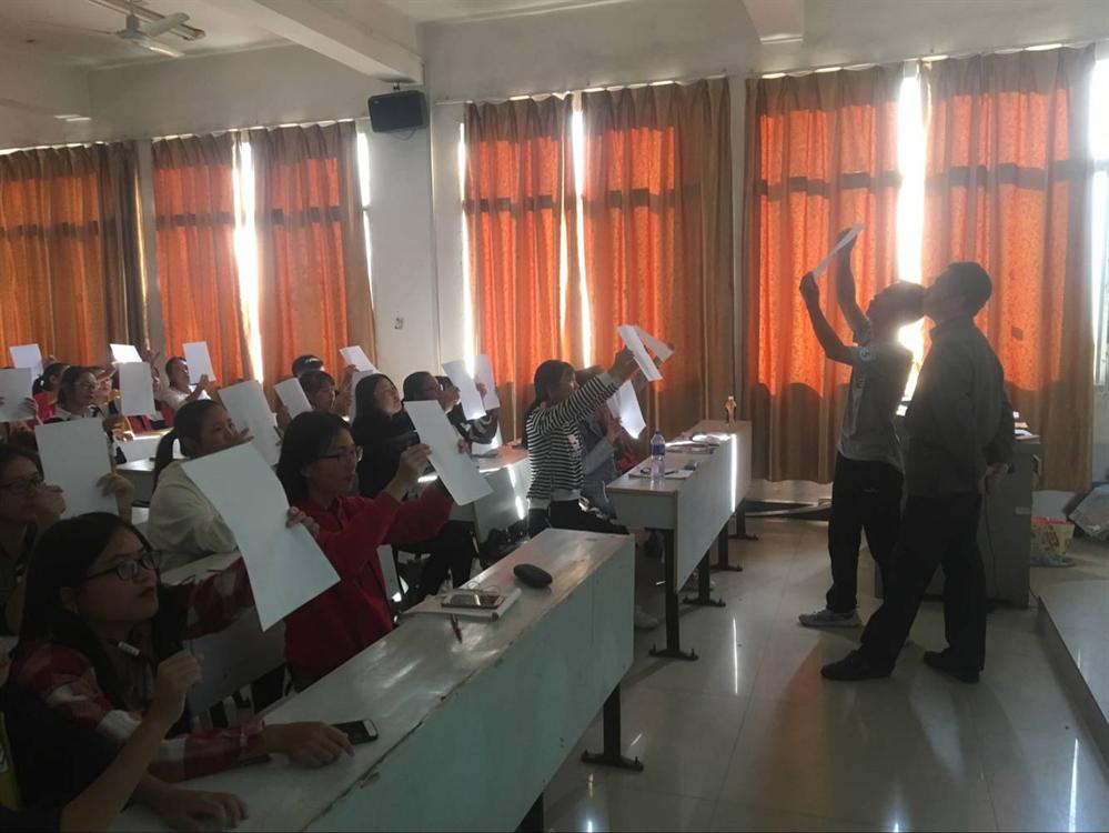 在讲座前,王老师首先带领大家学习了十九大关于健康中国战略的内涵和意义,然后从抑郁症的基本情况讲到了它的表现、患病原因、治疗方法以及预防策略。他指导大家学习了抑郁情绪和抑郁症的区别,特别强调了抑郁症治疗中的误区,和同学们一起分析了心理干部帮助抑郁的同学的切入点和禁忌。讲座气氛热烈,互动非常多。同学们认真的记着笔记,将近两个小时的讲座没有一个人走动。最后,大家在现场做了抑郁症问卷测试。通过现场报名和筛选,建立了10人的抑郁症康复小组。
