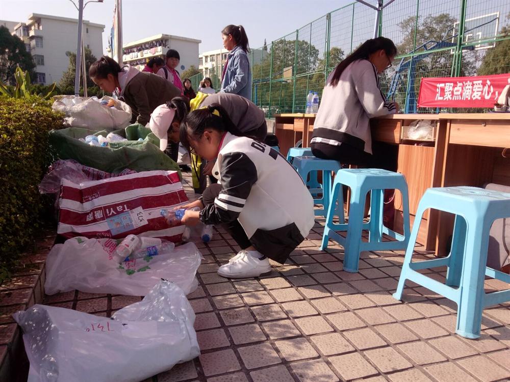 为了提高同学们的环保意识、号召同学们献爱心来帮助外院贫困学子,2017年11月1至3日校运会期间,外国语学院学生党支部携手外国语学院团总支学生分会及外国语学院环保俱乐部于中心小广场和外国语学院观众看台处共同举办“捐水瓶,献爱心”活动。