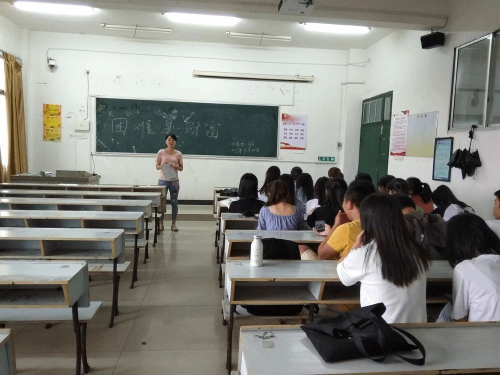 班会伊始,老师向同学们解读“困难”与“财富”,接下来,邀请同学们按座位顺序依次上台分享自己克服困难的故事,各位同学依次发表完自己的意见与想法后,廖宇沙老师对此次班会的意义做出点评,诚恳提出此次班会的目的:希望同学们明白“困难是财富”的道理,希望同学们能够从各自的经历中获得精神财富。