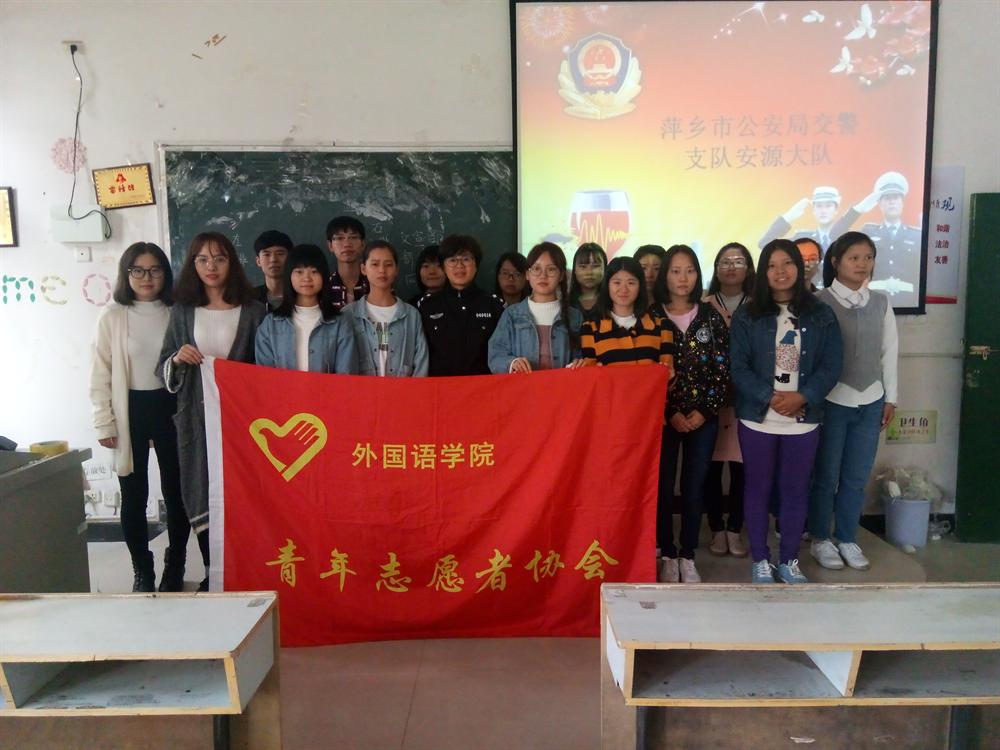 为加强志愿者的交通督导意识建设,培养并树立正确的交通督导规范意识,2017年10月17日上午12时40分,外国语学院青协在英华楼3304开展交通督导教育活动。参加本次活动的有安源交警王萍同志,会长余作敏,副会长廖晨,徐玉玲,王爱琴,潘佳锋,会长助理,各部门副部长及17级全体成员。
