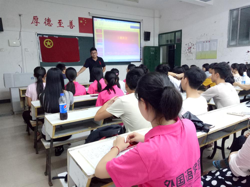 2017年9月8日晚6:45外国语学院16商本2班于3513教室召开主题班会,参与本次班会的有校团委副书记谢伟萍、16商本2班班主任冷全宝以及该班全体同学。