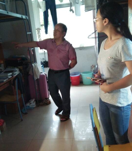 为响应创建文明城市,并提高学生自理能力,养成学生良好生活习惯,营造整洁宿舍环境,创建文明校园。9月19日下午4点,外国语学院党总支书记黄柏萍、16级辅导员廖宇沙老师以及涂力文、王婕老师来到10栋下寝查看同学们的寝室卫生并进行了相应指导。