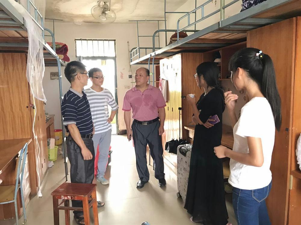 2017年9月10日上午十点,外国语学院党总支书记黄柏萍、院长欧阳咏梅、党总支副书记刘佳萍、团总支书记彭侃以及17级辅导员冷全宝、赖文萍前往新生寝室进行慰问。
