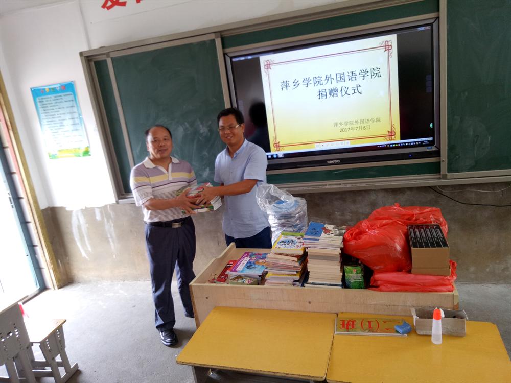到此时,用品已完全交到了何校长手中,捐赠仪式圆满结束。捐赠的用品,不仅仅是供孩子们学习的工具,而是承载了萍乡学院外国语学院对他们的殷切期望,也代表着两方的长期顺利合作。