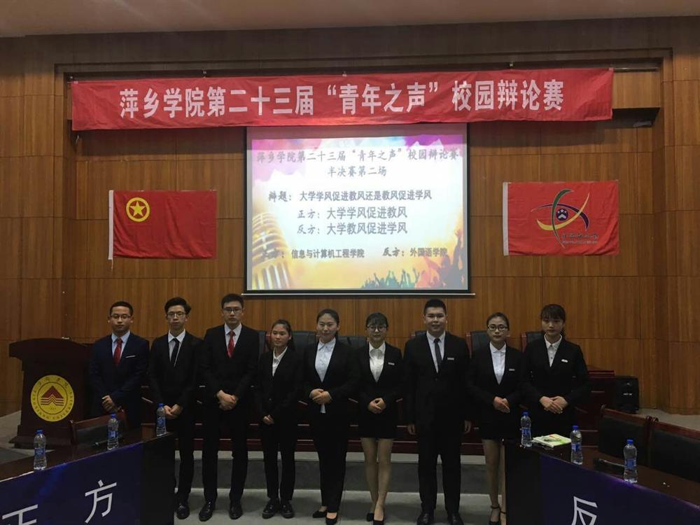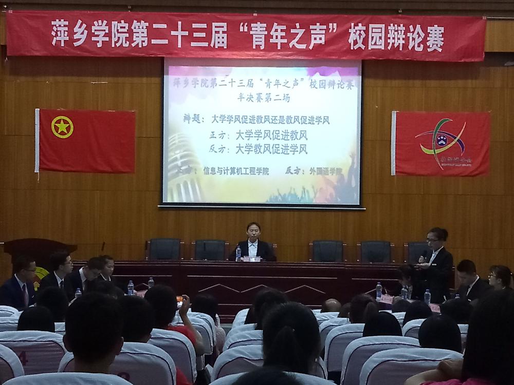 2017年5月17日晚八点,外国语学院辩论队在至善楼学术报告厅与信息与计算机工程学院半决赛隆重开始,此次辩论赛吸引了同学们的广泛关注。辩论赛有幸邀请到了校团委书记刘德平、商学院教授文侃、体育学院副教授范春金、学前教育学院团总支书记郑娟、工会教师吴岚等九位嘉宾担任评委。