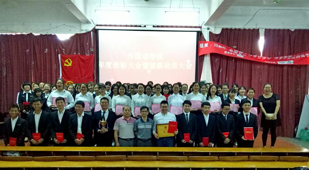为表彰年度先进工作者、个人及对下学期接新工作进行安排,外国语学院举办年度表彰大会暨接新动员大会。出席本次活动的领导有外国语学院党总支书记黄柏萍、副书记刘佳萍,团总支书记彭侃以及15、16级辅导员。