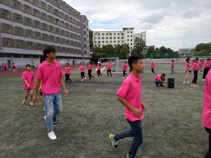 上午8:50同学们于田径场主席台前集合整队,在展示完各队队名、队歌、口号、队旗之后,同学们被重新打乱开始“友情链接”环节的游戏项目。该游戏考验着同学们的记忆力,尽管各小队均出现了不少失误,但游戏的目的旨在让同学们有更深的了解,让同学们在快乐中交到更多的朋友。尽管天气不如人意,但之后的“马兰开花”以及“两人三足”的比赛,让同学们笑声连连,获得了不少乐趣。