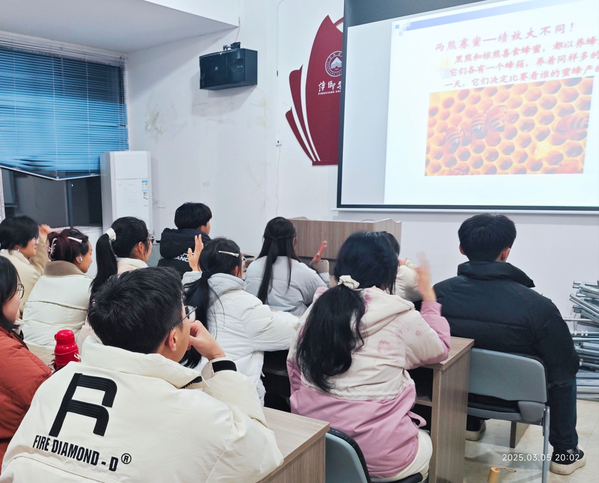 紧接着,王老师讲解了倾听的重要性和倾听的注意事项,并带领同学们玩趣味游戏。在“蜜蜂与蜂蜜”听觉游戏中,按性别有不同的指令设置,男生听到蜜蜂举手,女生听到蜂蜜举手,同学们都积极加入游戏,现场变成此起彼伏的“举手森林”,笑声与思考交织碰撞,训练了倾听时的专注能力。王老师以“四只好耳朵”讲解了在倾听时层层推进的四种态度,同学们理解了在倾听时要以尊重和真诚搭建心灵沟通的桥梁。