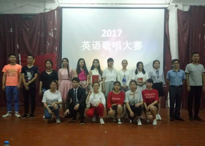 为了培养同学们对英语学习的兴趣,提高同学们的专业认同感,外国语学院于2016年6月8日晚7点在跬步楼1115举办了英语唱歌大赛。莅临比赛的评委嘉宾有外国语学院党总支副书记刘佳萍,优秀青年女教师涂力文。外国语学院团总支学生分会主席渐玉佩,副主席吴小洲,纪保部部长李世征,宣传部部长张兰兰,外联部部长刘秀萍,学习部部长赖瑶。