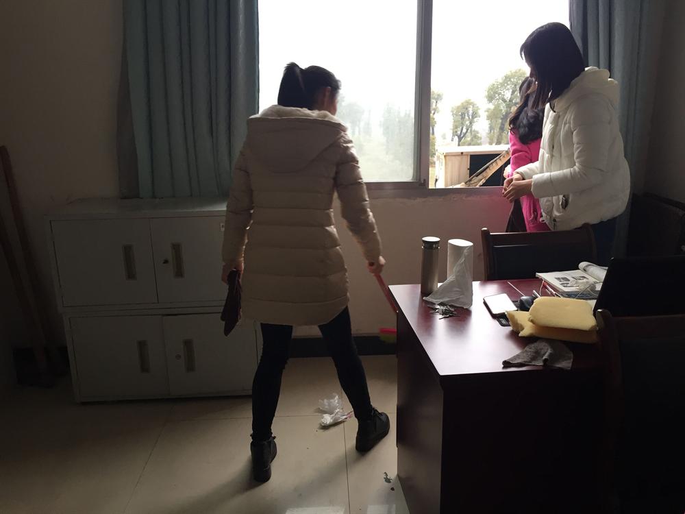 此次志愿清扫活动中,重点清扫了办公室及走廊的卫生死角,擦洗了每一处角落。虽然清扫工作很辛苦,但是丝毫没有影响大家的积极性,每位同学都有一颗火热的心。与此同时,可爱的老师们主动加入了清扫行动,在老师的赞许下,大家充满了动力!