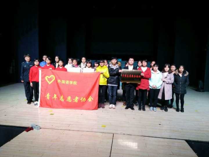 2016年11月26日,星期六,外国语学院青协参加了由“萍乡市公安局和萍乡市文明办”联合举办的颁奖典礼。参加典礼的有副会长潘佳锋、王爱琴、廖晨以及16级参加演出的干事。
