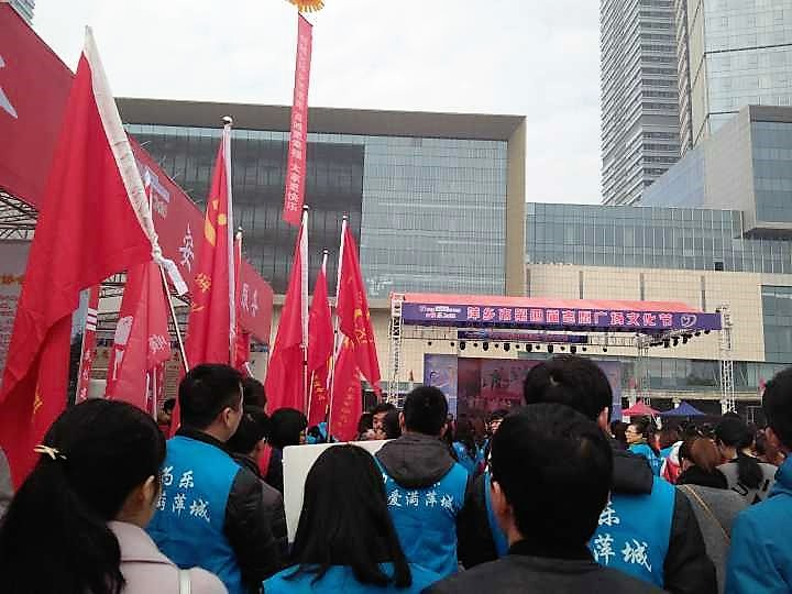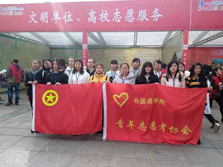 2016年12月3日,星期六,上午9:30,外国语学院青协部分成员参加了在秋收广场主舞台举办的萍乡市第四届“12.5”志愿广场文化节开幕式。出席开幕式的嘉宾有省文明办主任张天清,市文明委副主任聂晓葵等领导,以及各高校、组织、文明单位的志愿者。萍乡市委副书记谢光华主持开幕式并宣布志愿广场文化节开幕。