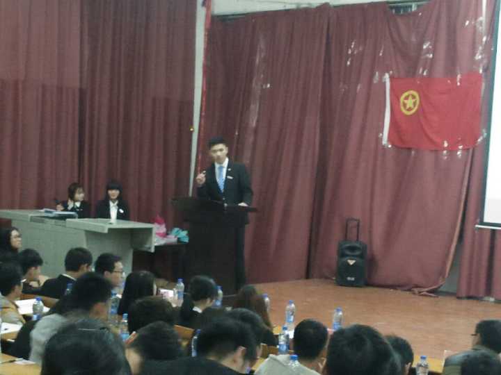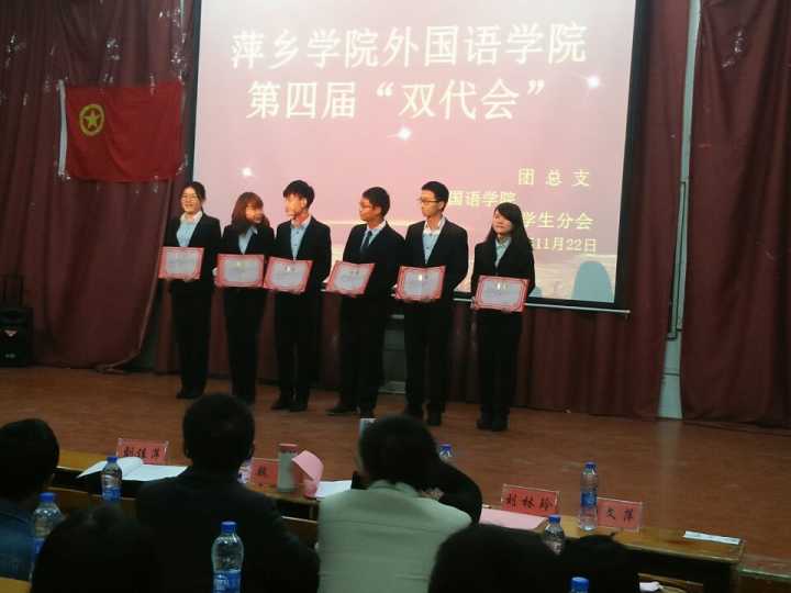 在结束了奏国歌环节之后,外国语学院团总支书记魏峰致开幕词、校领导谢伟萍讲话、颁发2015-2016年外国语学院团总支学生分会主席聘书、团总支学生分会主席杨昌伦宣读团总支学生分会工作报告、组织部部长韩洁宣读代表资格审查报告、团总支副书记曹达智宣读萍乡学院外国语学院第四届“双代会”选举办法。紧接着,便是团总支学生分会主席团成员的选举。在介绍完候选人后,各候选人按次序发表竞聘演讲,候选人们激情的演讲赢得了观众们的掌声和喝彩,也将本次活动推向高潮,尤其是在自由提问环节,候选人们面对各代表的提问,沉着冷静,发表自己独特的意见,相信他们也得到了大家的支持。