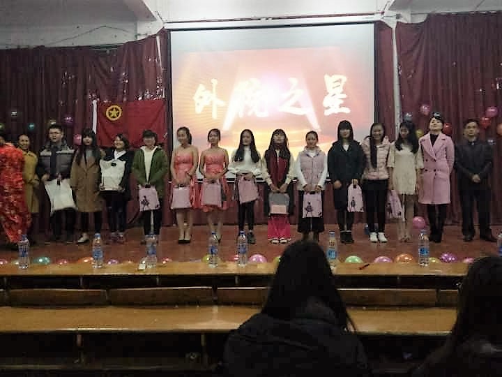 为了给同学们提供一个展现自我的平台,丰富同学们课余生活,营造和谐氛围。星期三晚上7点在跬步楼1115外国语学院召开新生才艺决赛,参赛的是外国语学院从初赛中顺利进决赛的同学,出席本次大赛的评委是外国语学院党总支副书记刘佳萍老师,辅导员赖文萍老师和廖宇沙老师,主席渐玉佩,副主席吴小洲、刘珊和胡君,团总支副书记吴晓艳,嘉宾有学习部部长赖瑶、张罗辉,记者团团长雷冬梅以及外国语学院各个部门的部长。