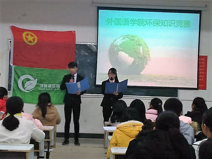 为了让更多的人了解环保、践行环保、热爱环保。11月30日晚七点整,外国语学院于环保俱乐部于英华楼3304开展环保知识竞赛。莅临此处比赛的有外国语学院团总支学生分会主席渐玉佩、副书记吴小艳、副主席吴小洲、学习部部长赖瑶、外国语学院青年志愿者协会会长余作敏、组织部部长张罗辉。