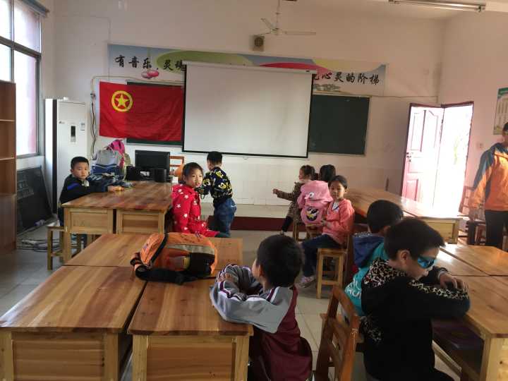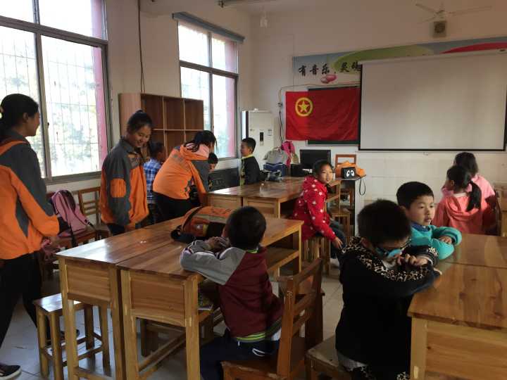 也就是在这样温馨的画面下,支教活动正式开始了,因为是第一次去,志愿者们和孩子之间都隐隐存在着些许的羞涩。然而,志愿者们为了让孩子们可以大胆,亲切的与自己交流,他们纷纷送出了自己手工制作的精美小礼物,不但是作为见面礼,也表示着外国语学院每一位学员对这些孩子们的关爱。在送小礼物的同时,每个人都进行了自我介绍,从这些自我介绍中,显然可以发现孩子们对这样的支教活动很期待也很喜欢。自我介绍结束后,便正式进入了课堂时间,每位志愿者都会把自己所准备的知识进行讲授和演习,不管是一个个简单的英文字母,还是笔画复杂的汉字,不管是一首儿歌,还是古诗。志愿者们都会很用心地在教。同时,孩子们也很认真在听,看着他们那种渴望知识的眼神,志愿者们也流露出了自己的感情,对他们更是呵护有加。在上课时间快要结束的时候,带领人李雅丽同学组织大家一起围个圈唱歌,跳舞。夜色就快降临,窗外寒风四起,但因为他们用最真诚的心在吟唱着。每个人感受到的只有温暖。因为此时的心是温暖的。