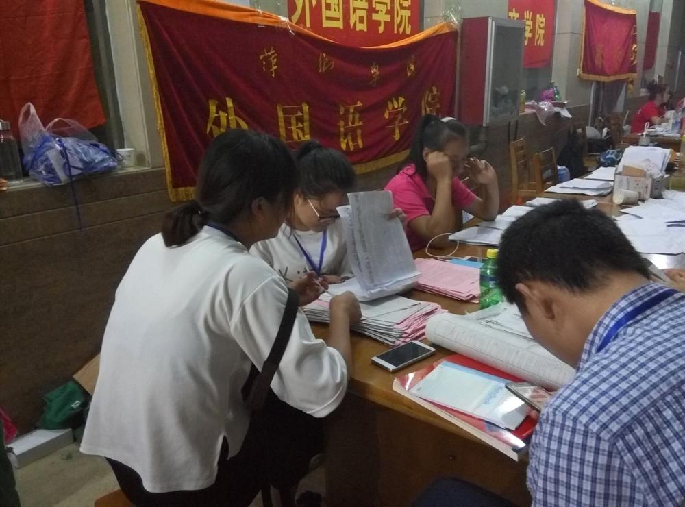 为确保新生到来时可以人带领登记注册等,我院学生干部奉献出自己的时间来替代需要上课的同学,有些干部已忙碌了一天,即使如此,晚上还是一如既往迎接新生。我们不辞辛苦,为的只是能让新生在初来萍乡学院时就有一种归属感,让他们明白自己的选择没有错,选择外国语学院更加没有错。