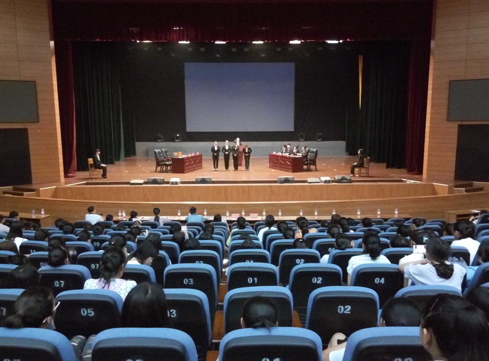 2016年9月8日上午9:30外国语学院于音乐厅举办辩论赛之迎新观摩赛,此次辩论赛吸引了大一新生的广泛关注。比赛辩题为“我们应该/不应该支持父母生二胎”。正方辩手有刘晓旭,章昱,王秋怡及程安娜。反方辩手有林宣,石美芳,陈颖及陈未。莅临此次比赛的嘉宾有外国语学院欧阳咏梅院长,党总支书记黄柏萍老师、党总支副书记刘佳萍老师以及团总支书记魏峰老师。评委有16级辅导员和班主任。