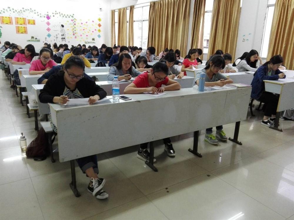 本次“党团知识竞赛”初赛活动以笔试的形式举行。取得优秀成绩者将进入下一次的“党团知识竞赛”决赛。开考前,外国语学院团总支学生分会组织部负责人负责维护考场秩序,安排考生入座备考。待到开考时间,由外国语学院团总支学生分会干事们分发考试试卷,并进行严格监考。在考试过程中,只见考生埋头认真地做试题,整个考场鸦雀无声。学生在完成答卷并自我进行了检查后,陆陆续续地递交答卷,安静地离开了考场。负责本次活动的外国语学院团总支学生分会干事清点完答卷,随后也离开了考场。