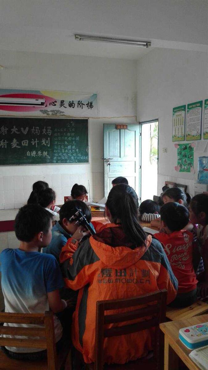 在一段不长不短的路程结束后,他们到达学校后就受到孩子们热情的拥抱,接着他们就拿出事先准备好的单词来教孩子们念记背着,孩子们热烈的反响着,快乐的畅游在知识的海洋里。随后他们开始了快乐的游戏时间,以小礼品和糖果作为奖励,孩子们的笑声传的很远很远,虽是暑气逼人却也快活的很。