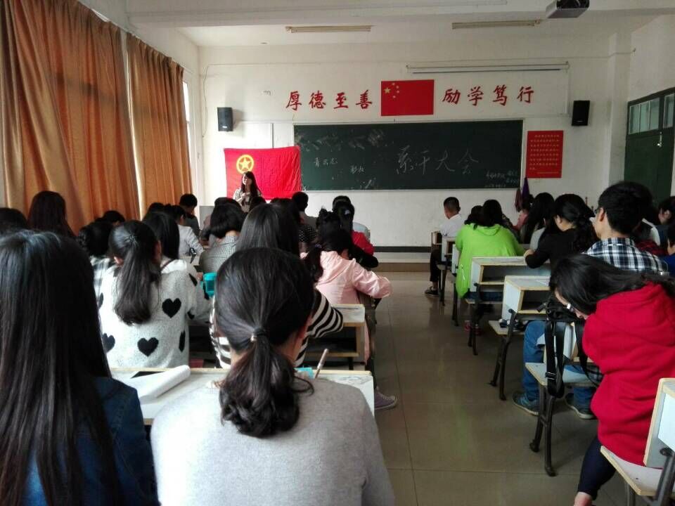 2016年4月6日12:40外国语学院全体学生干部在英华楼3504召开大会。首先由主席杨昌伦上台讲话。介绍了征文活动和关于模拟招聘会的有关事项,由校学生会主办,强调了大一、大二、大三学生都参与。每个人都要写简历,对班干、系干、入党积极分子的要求各不一样。介绍了工管与外院彩妆大赛的相关消息,参赛人员必须自备服装和化妆品。另外还讲了常规的一些工作,住楼上的同学乱扔垃圾和往下倒水。之后讲了班级考评的问题,前三名的班级进行奖励,后三名通报批评,后补充寝室也列入外院评比事项。