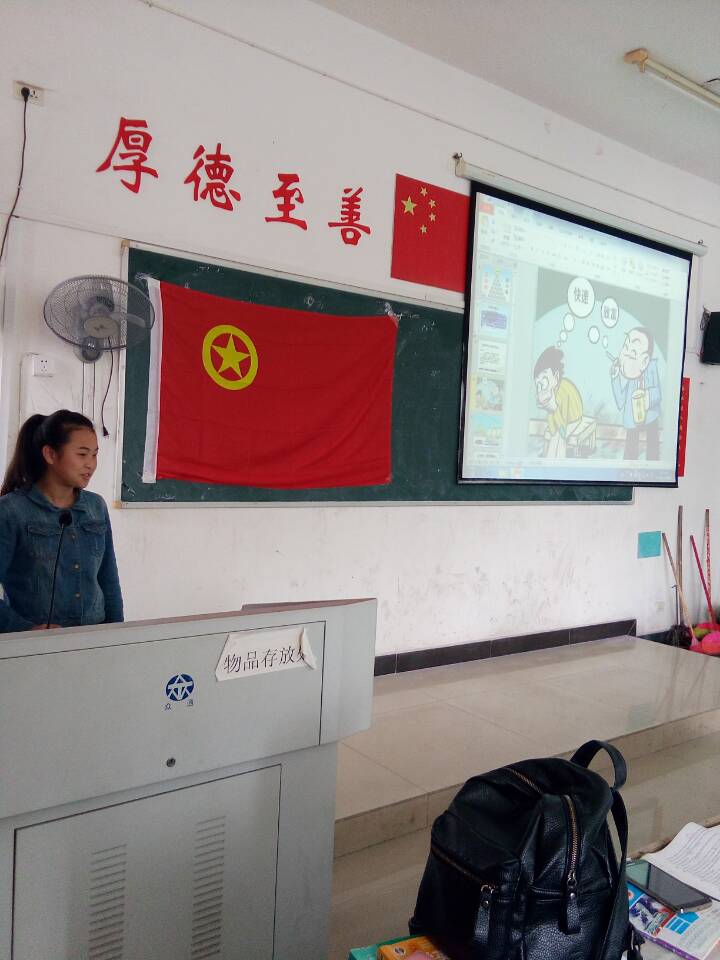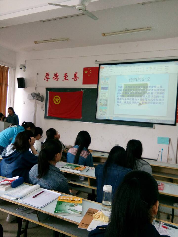 2016年4月20日,英语教育班级班在英华楼307召开了一次班会,班会主题为“反邪教,反传销,反诈骗,提高保护人身财产安全意识”的班会,班会上担任主持人的为劳动委员叶飞。