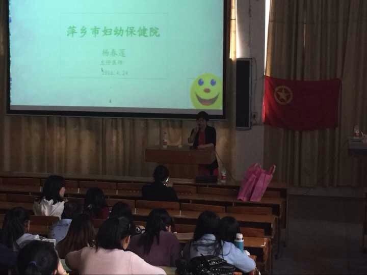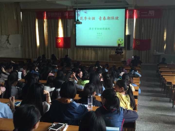 4月25号下午两点整,萍乡市妇幼保健院主任医师杨春莲给外国语学院15级班级普及青春保健知识,在普及课的开始15商英班长渐玉佩给在座各位同学介绍了杨春莲女士。青春期是少男少女荷尔蒙波动最大的时刻,花季少女需要照顾好自己,让自己健康成长。