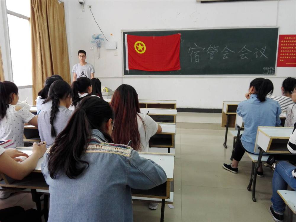 2016年5月4日,星期三,11:50外国语学院宿管会在英华楼3335教室召开宿管会会议。出席本次会议的有外国语学院宿管会主任罗甜、学生分会副主席龚杰、各部门负责人以及大一入党积极分子。