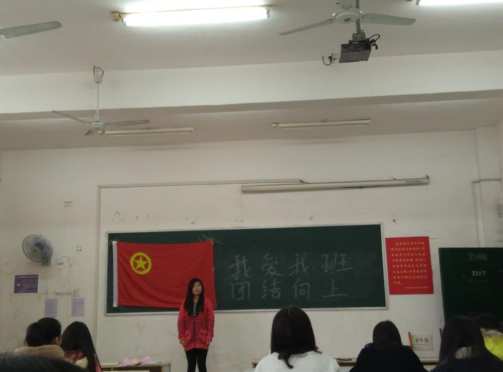 2016年3月24日,我班在英华楼307召开了一次以“我爱我班,团结向上”为主题班会,此次的班会主要由副班长邓清秀主持召开。