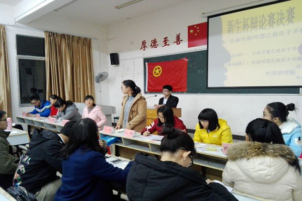 2015年12月8日晚7:00,外国语学院于英华楼3504开展新生杯辩论赛决赛,出席本次辩论赛的有党总支副书记刘佳萍、校优秀辩手陈志坚、院优秀辩手陈颖、王秋怡等。