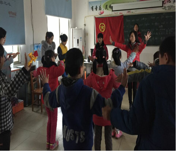 汽车抵达目的地后志愿者们便抓紧时间将孩子们集中到教室,拿出事先准备好的单词写在黑板上,为接下来的节目排练做准备。孩子们认真地学习黑板上的英文也开心积极的在练习舞蹈。他们激情澎湃满腹热情地准备着节目 ,这个下午志愿者们和孩子们都十分开心愉快。