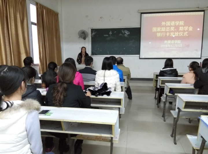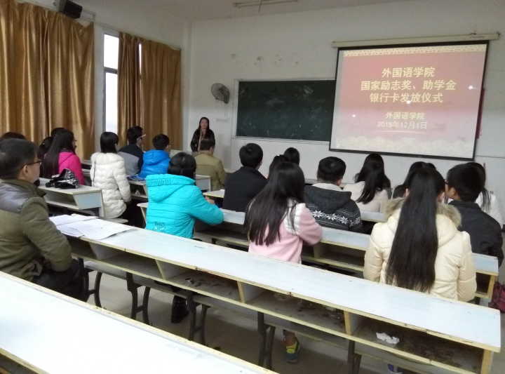 开展奖学金、助学金发放仪式。参加此次仪式的有外国语学院院长欧阳咏梅、党总支书记黄柏萍、党总支副书记刘佳萍、团总支书记魏峰。
