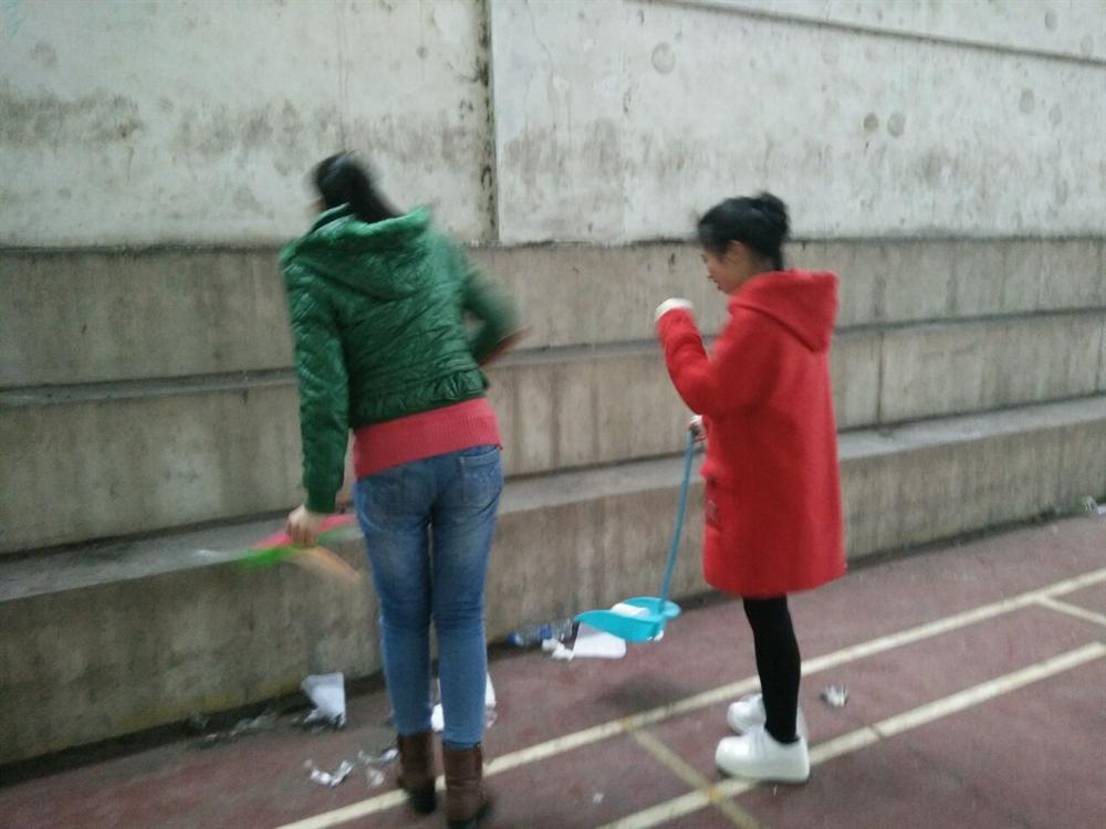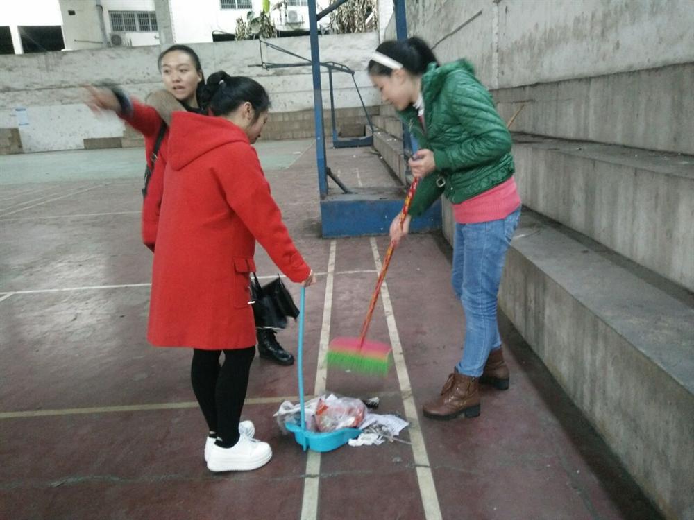 3月9日下午5时,外国语学院团总支组织的雷锋小活动——清理风雨篮球场上的垃圾和树叶。