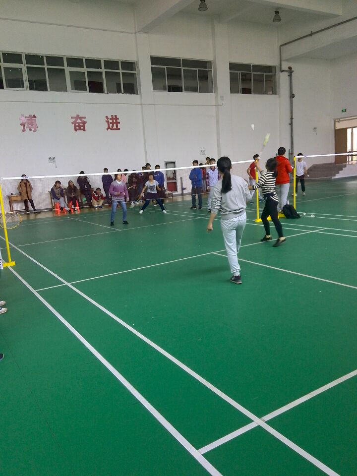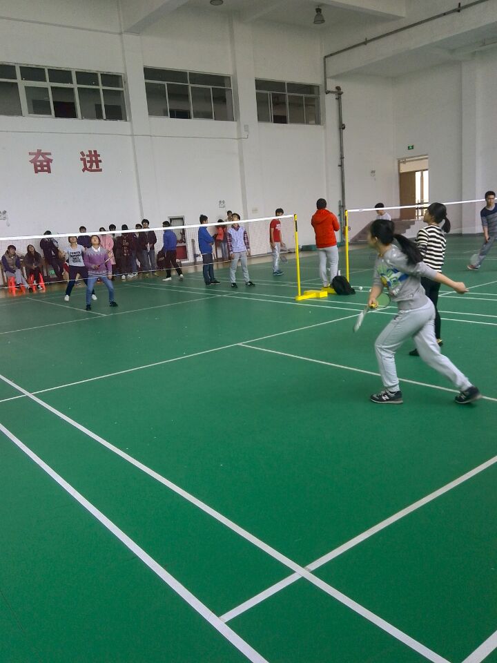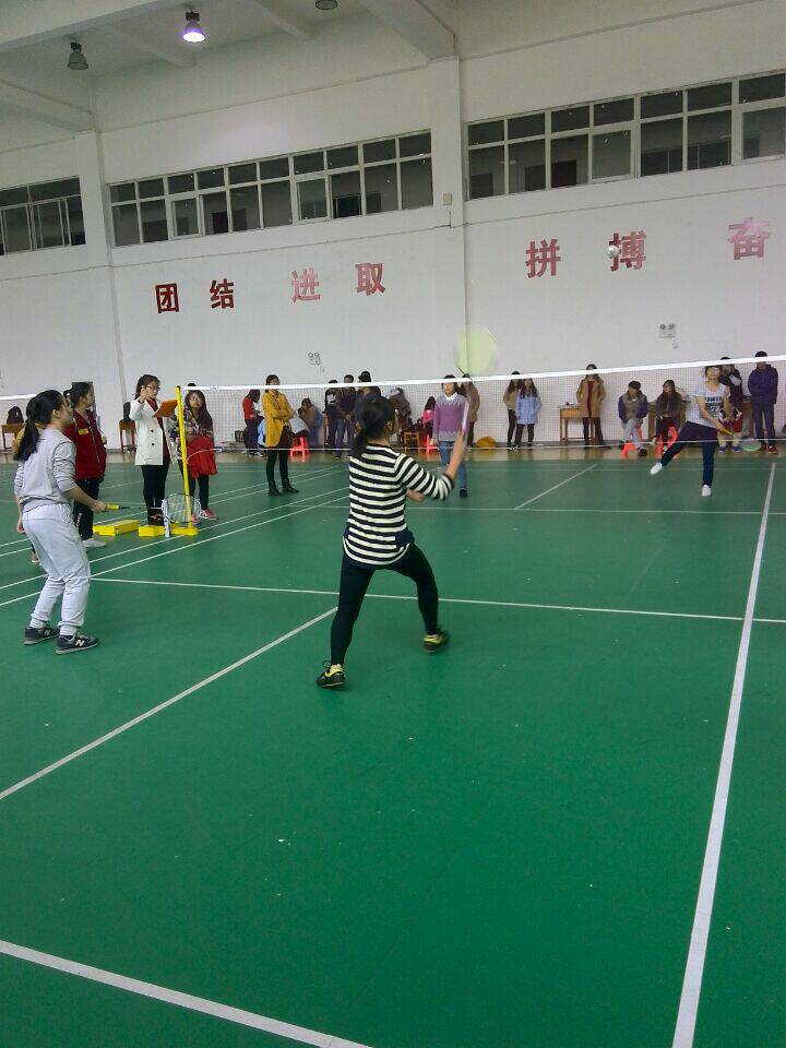 2015年12月3日中午12:40分,由羽毛球协会开展的羽毛球赛在体育馆火热进行中。同学们积极参与,各个学院踊跃报名,使活动开展的如火如荼。
