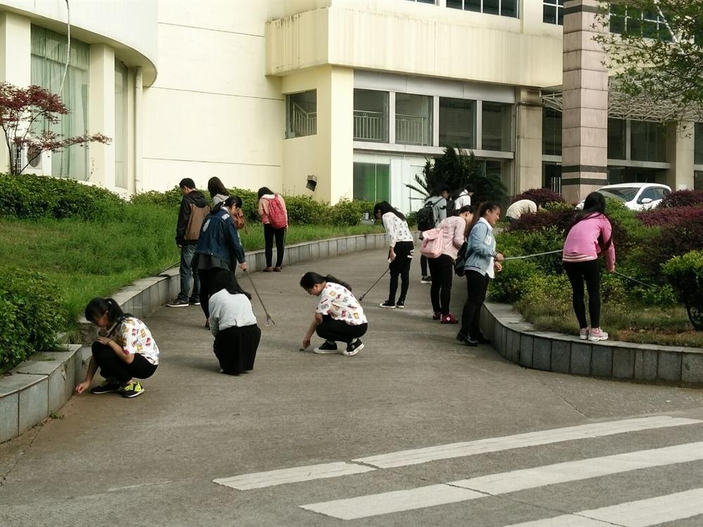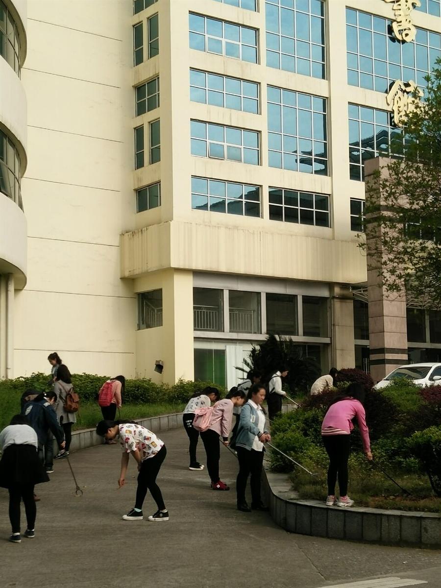 4月11日,下午4点整,由外国语学院团总支学生分会的记者团和组织部一齐清理校园白色垃圾。 系干们一放学就在以前老系办前集合。很快人员都到齐了,我们在主席团助理的带领下顺利到达我们所需要负责的区域。我们先在跬步楼拍完集体照。接下来我们就开始分工协作了。我们被分为两组。一组清理由跬步楼至致善楼这一带,另外一组清理音乐厅至图书馆那一段。系干们有的拿着钳子,有的直接用手捡。我们并没有感觉到难为情,相反我们很开心可以为萍院效力。