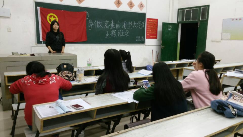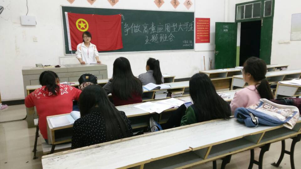 为了培养锻炼出德智体美劳全面发展的高素质应用型大学生,我班于2016年4月7日晚在英华楼3420开展了“文明、诚信、加强自律、勤学苦练、注重实践、争做高素质应用型大学生”主题班会。