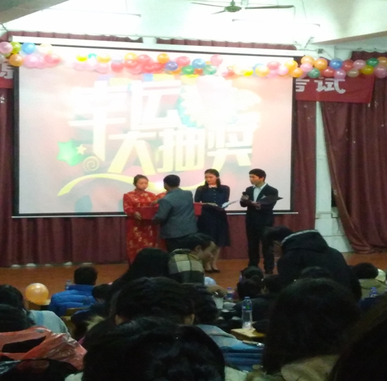,全场气氛伴随着舞蹈Timber开始上升,而游戏幸运大抽奖更让现场欢呼声不断,主持人在颁奖时的神秘以及同学们的默契配合将气氛推向高潮,之后的表演也都让晚会沉浸在欢声笑语中,最后晚会在大合唱十年中圆满结束。
