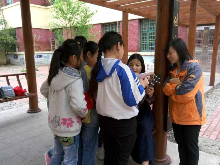 4月12号号下午两点半,15英教1胡琪带领14英教杨金秀与和何芬同学都是满怀着期待与兴奋前往安源学校 同学们都做了很充足的准备,在微风轻起的天气里踏上了前往安源小学的路途。