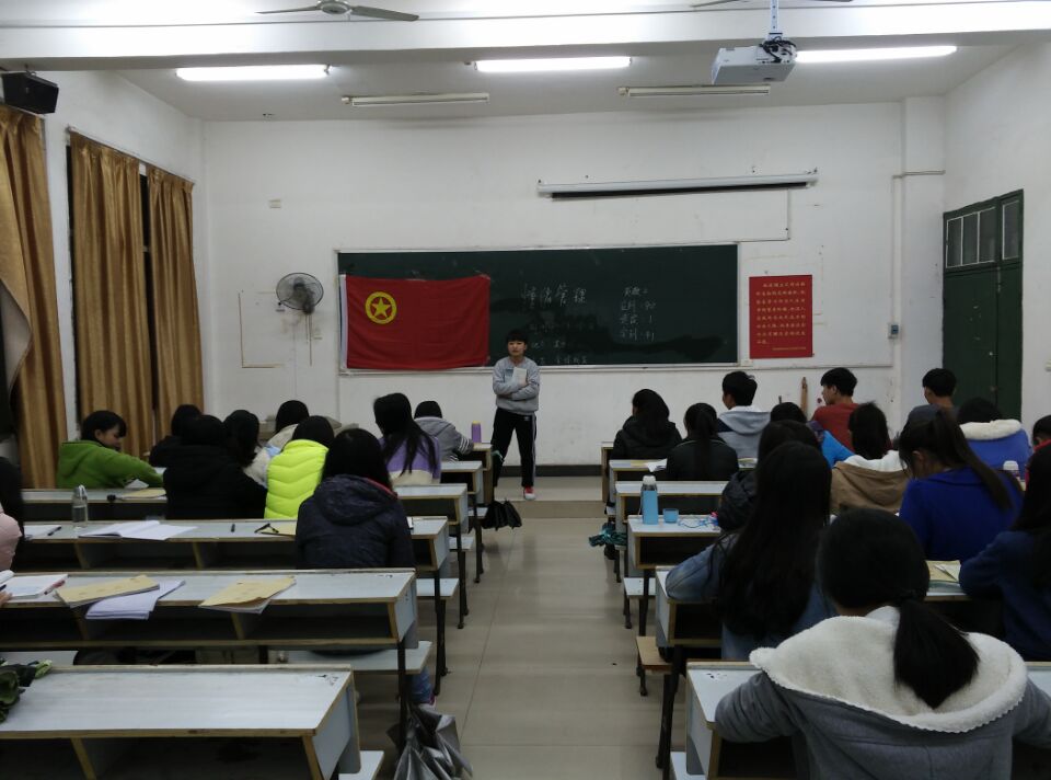 2015年11月11日晚上8:00,英教2班在英华楼3303教室开展情绪管理主题班会,此次班会由心理委员刘川同学主持,参加此次班会的为英教2班全体同学。