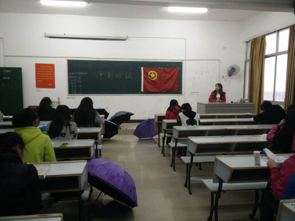 为了强调英语四级对大学生的重要性,提高同学们对其的热情,外国语学院14英教2班于2015年11月12日在英华楼3512举行了关于“冲刺四级”的班会活动,活动由本班心理委员赵茂宇主持。