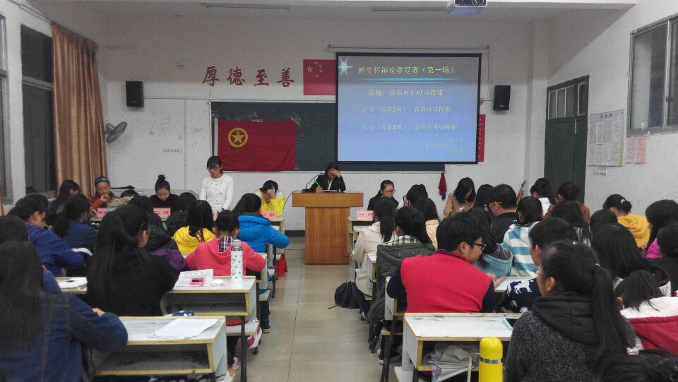 为了锻炼大学生的敏捷思维,为了提高新生们的口才与交际能力在生活中有一定的突破。11月19日18:50在英华楼3504举办了一场辩论赛。辩题为:青春可不可以挥霍。正方认为青春可以挥霍,反方则认为青春不可以挥霍。外国语学院副主席吴卉,校优秀辩手陈志坚学长以及外院辩论队的学姐们担任此次比赛的评委,参与辩论的是外院辩论队的大一新生。