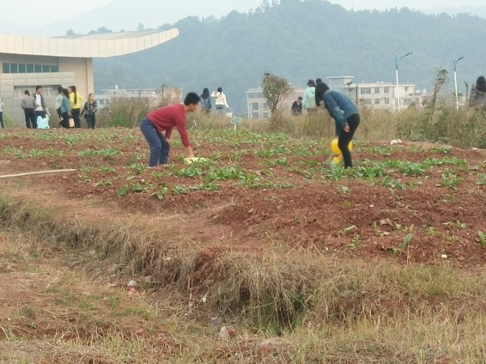 后山一亩亩菜地,是属于我们自己的劳动天地。或许是因为我们的新鲜感,下课铃一响,我们就一路狂奔。学长早早将我们的工具领到了菜地,每个班的同学拿着工具,大家都迫不及待地想看看自己班上的小白菜长的怎么样了。虽然我们有分班级,但是我们整个外院都很团结,看到哪里还有菜地没有浇完,我们就会主动上前去浇水。即使忙到了天黑,菜地里依旧可以听到我们的欢声笑语。