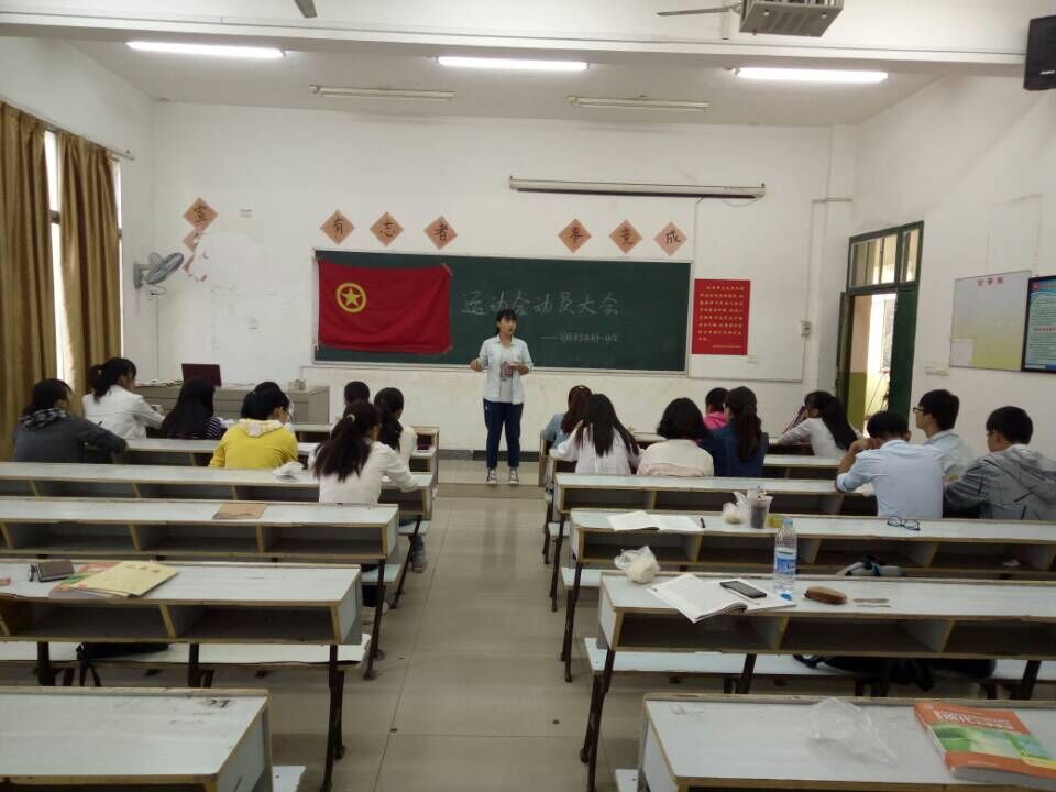 2015年10月18日晚 19:30,14英本1班由班长曹紫芯于英华楼3316召开 以“运动会动员大会”为主题的班会。