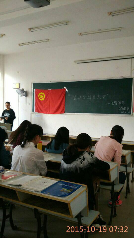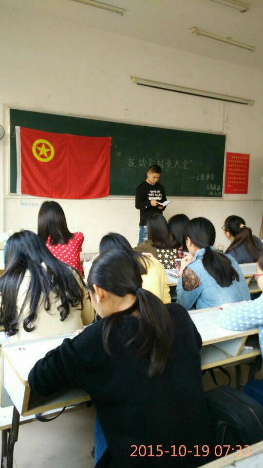 2015年10月19日,运动会动员大会工作会议在英华楼3302顺利召开,此次出席会议的有班长祝鑫,团支书刘香梅及班上全体同学。