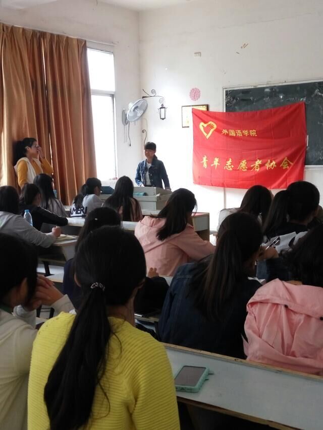 2015 年 10 月 13 日,星期一,中午十二点五十分外国语学院青年志愿者协会第三次例会在英华楼 3304 召开 。参加本次会议的有青协会长陈瑜,副会长陶洋杨和熊亚,会长助理熊慧,各部门部长以及 15 级全体成员。