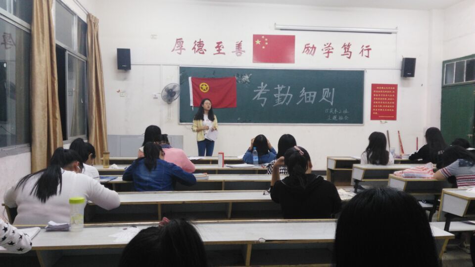 10月14日晚上,15英本2班在英华楼3503召开了一次班会。此次班会由该班的副班长张敏主持。班会主题为“考勤细则”。
